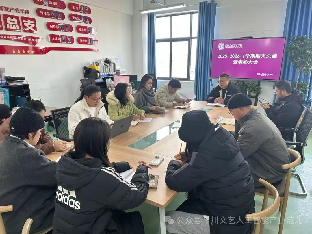 2026年1月4日下午,网易人工智能产业学院在梓潼校区B栋707组织召开2025-2026学年第一学期期末总结表彰大会。学院领导、各专业负责人、辅导员及教职工齐聚一堂,回顾本学期工作成果,总结经验,展望未来,并对表现突出的教师进行表彰。