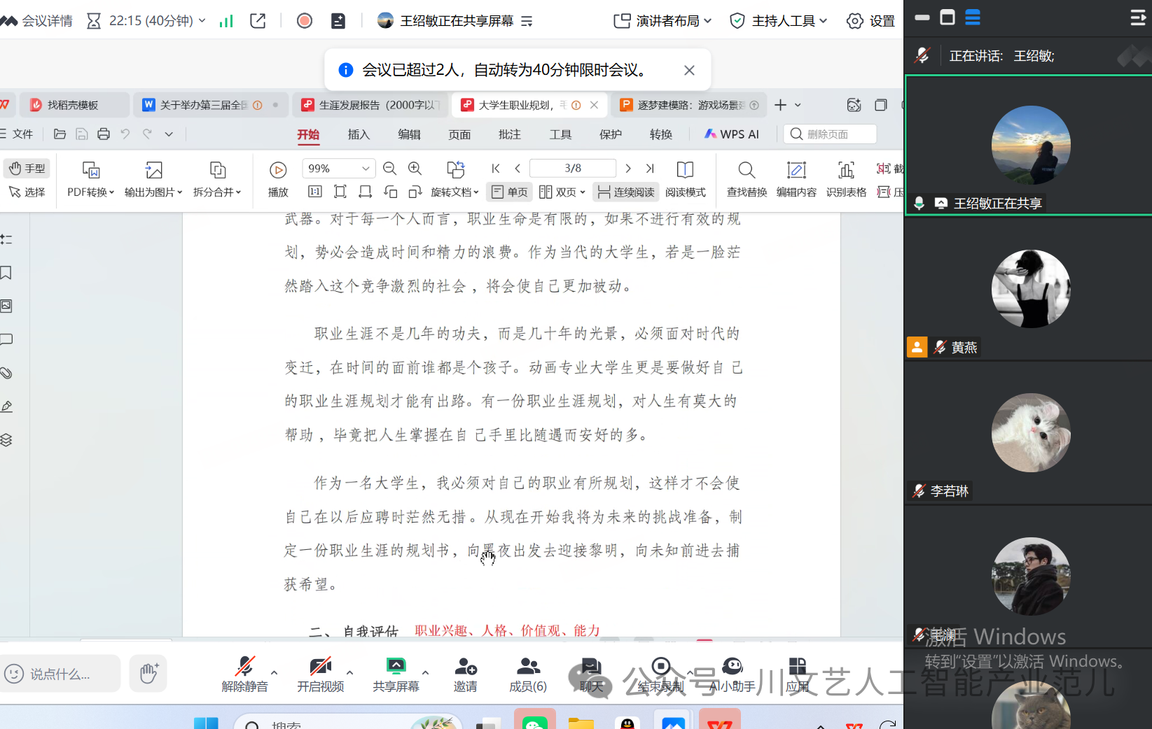 11月7日,网易有道产教融合中心特别邀请网易有道职业规划与心理赋能领域专家王绍敏老师,通过线上方式为五位选手提供了“一对一”精准辅导,针对每位同学的个性化职业规划方案给出优化建议。