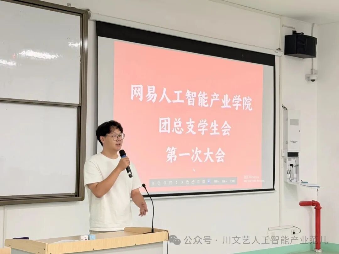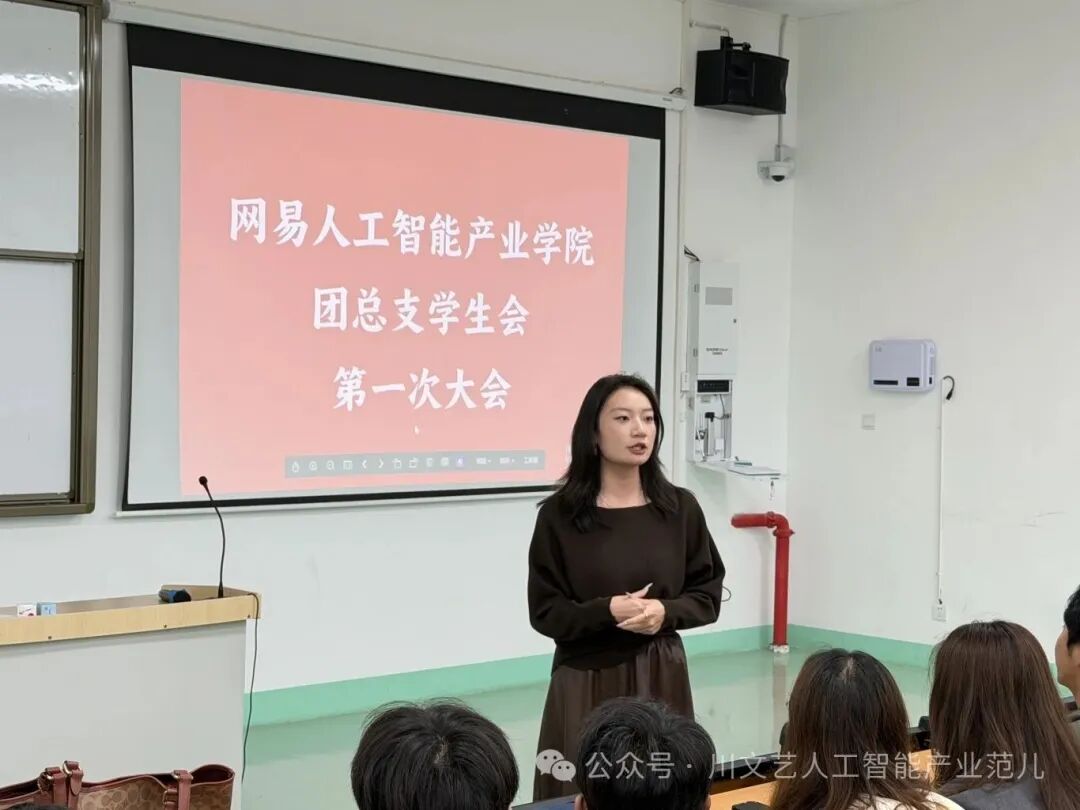 2025 年 10 月 13 日,网易人工智能产业学院第二届学生会新学期全体大会在 B 栋 201 教室举行,学院副院长兼党支部副书记张新、学院团总支书记李尚洁、学院学生会主席及各部门部长出席并讲话