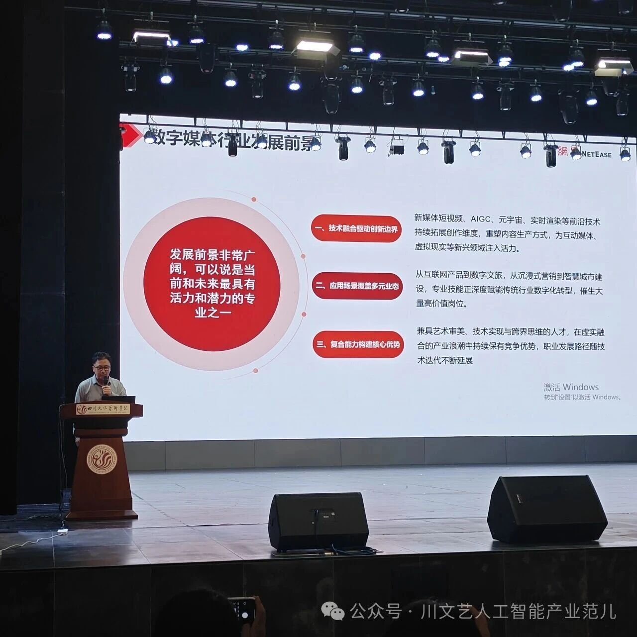 为帮助2024级数字媒体艺术专业学生更好地进行专业方向选择,明晰未来职业路径,网易有道产教融合中心特别邀请网易有道教研老师姜小虎,于2025年10月16日在文昌剧院组织开展了《聚焦数字视界,赋能职业未来——数字媒体艺术专业核心技能与就业路径解析》专题讲座。