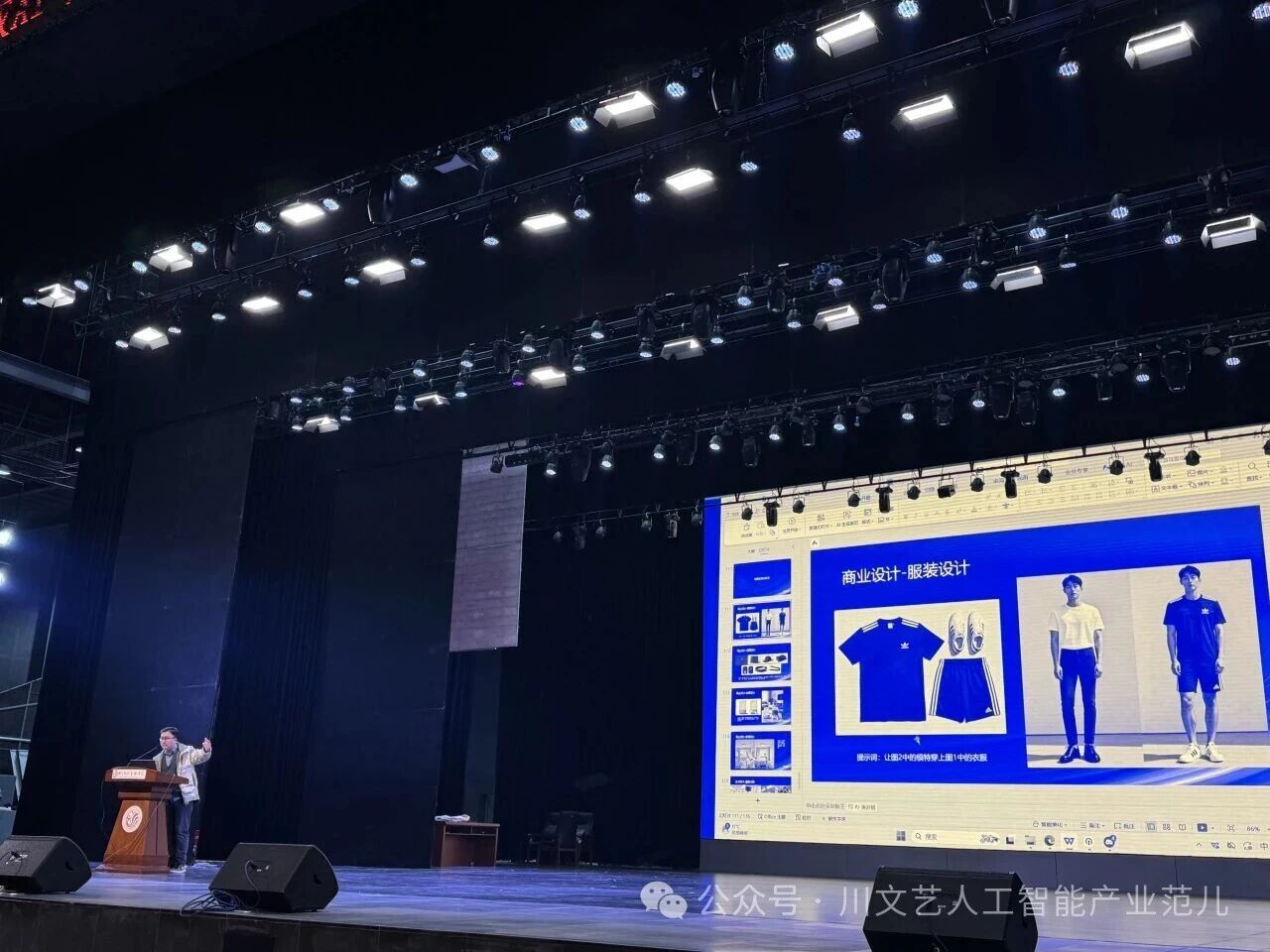 在实操演示环节,姜老师现场展示了如何使用AIGC软件生成商业设计图片。“关键词的精准度决定创作上限,艺术审美决定作品温度。”姜老师结合项目案例,拆解了“AI生成+人工优化”的创作流程,让在场学生直观感受到AIGC作为“创意辅助工具”的实用价值。