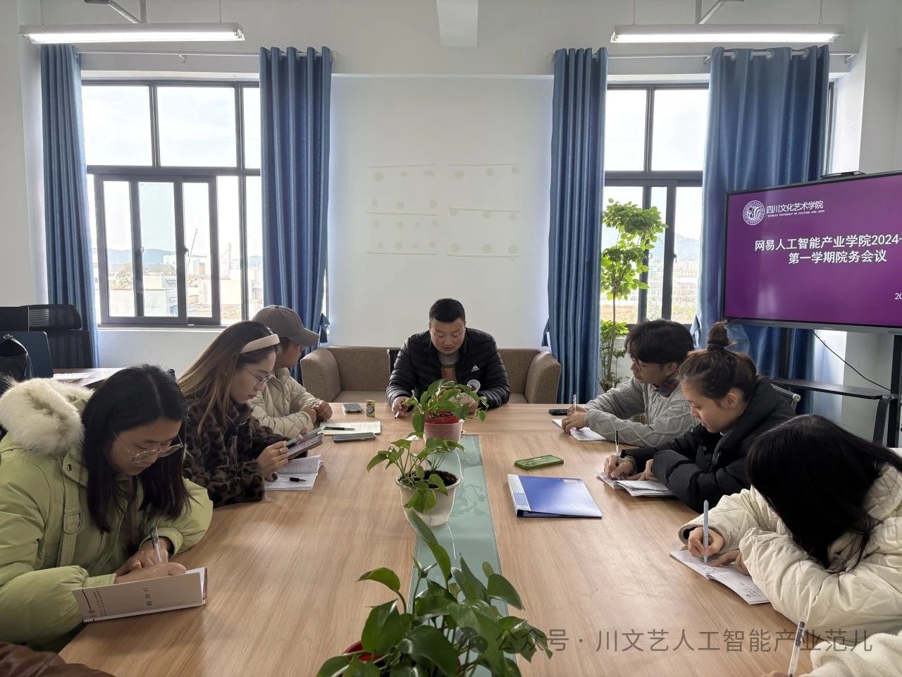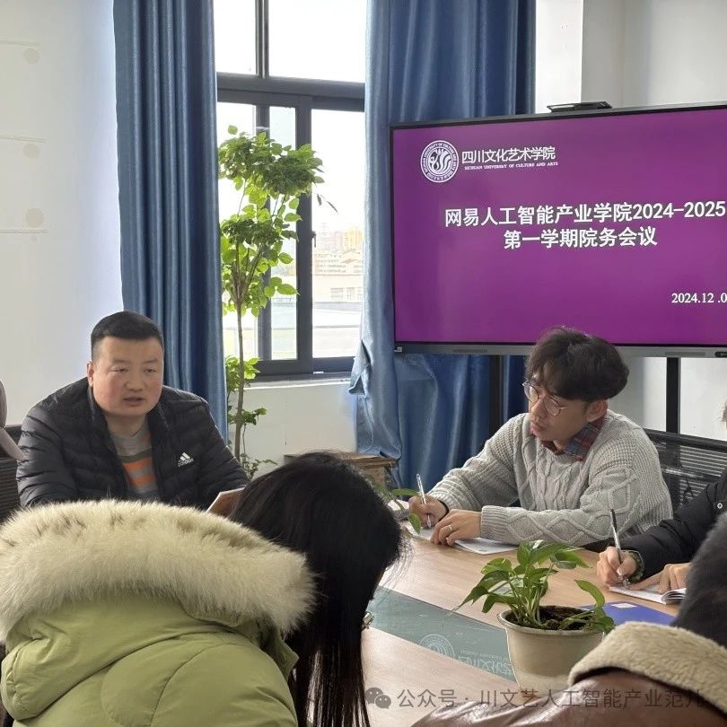 2024 年 12 月 3 日,网易人工智能产业学院在梓潼校区教学楼 B 栋 707 召开了 2024-2025 第一学期期末工作部署会议。会议由学院副院长兼党支部副书记张新主持,全体教师共同参与。