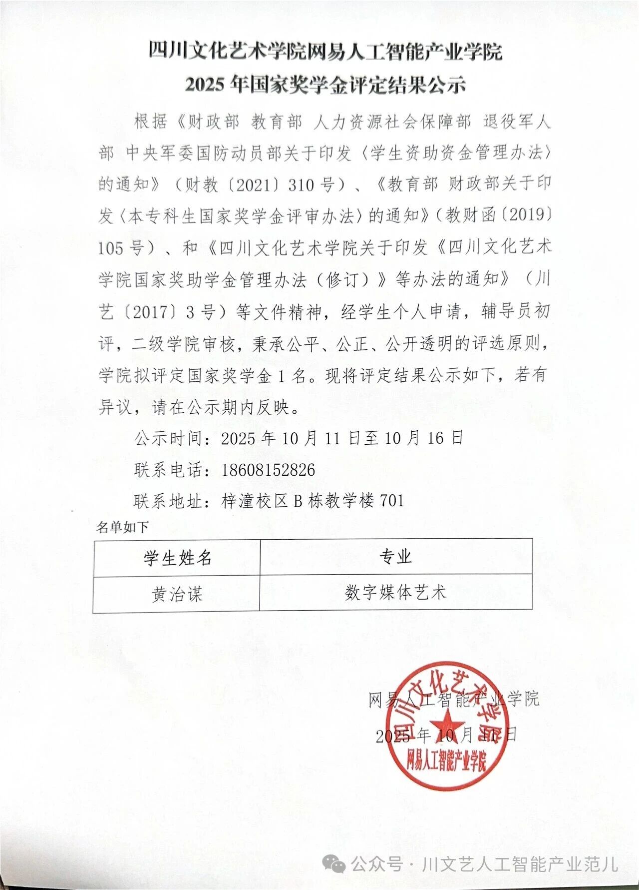网易人工智能产业学院2025年国家奖学金评定结果公示