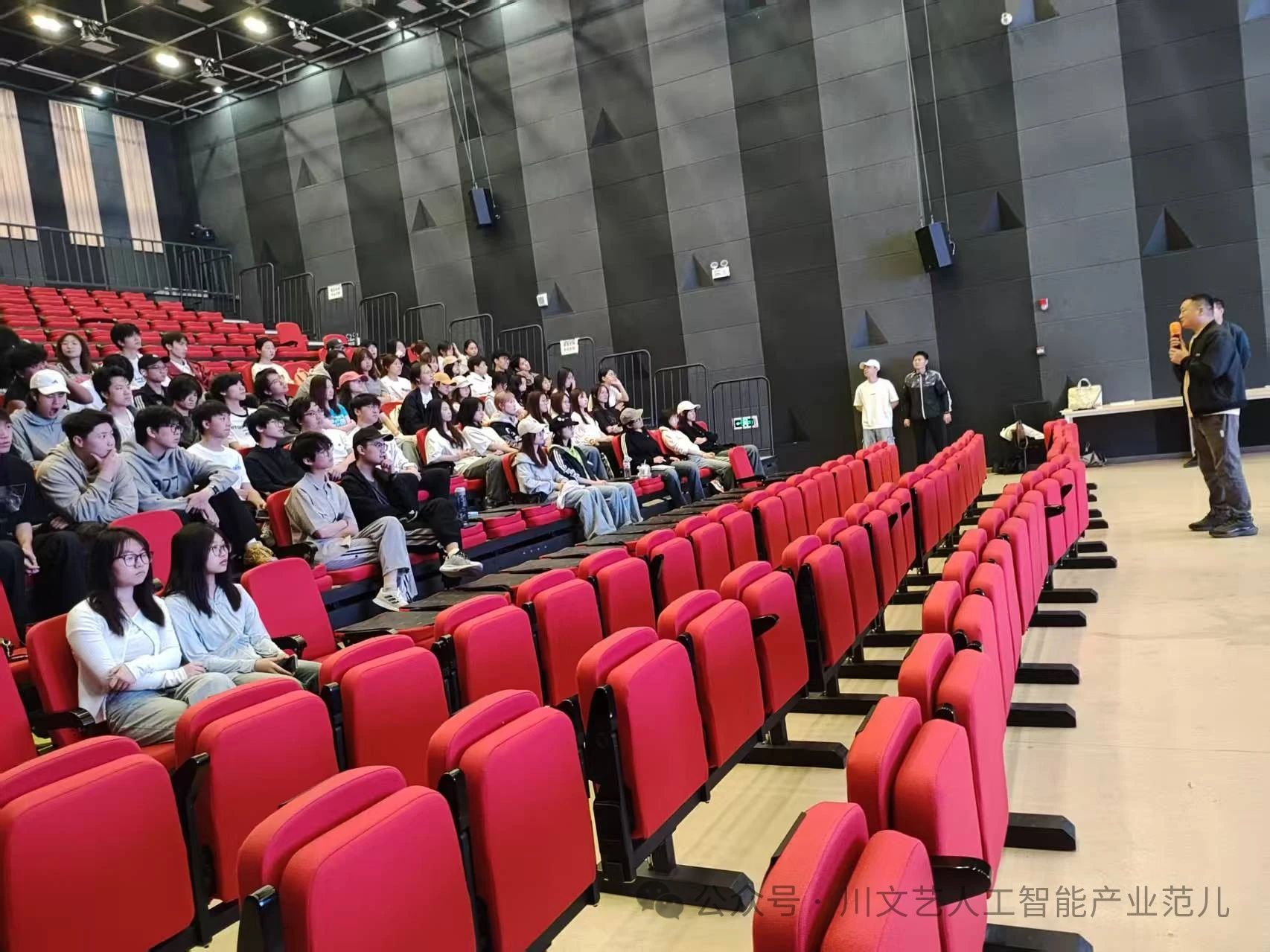 2025年4月28日,网易人工智能产业学院的网易企业课程AI生成式技术应用正式在融媒体中心1号演播厅开课,本门课程由网易有道产教融合中心教研老师王毅主讲,2024级数字媒体艺术专业全体学生参与学习。