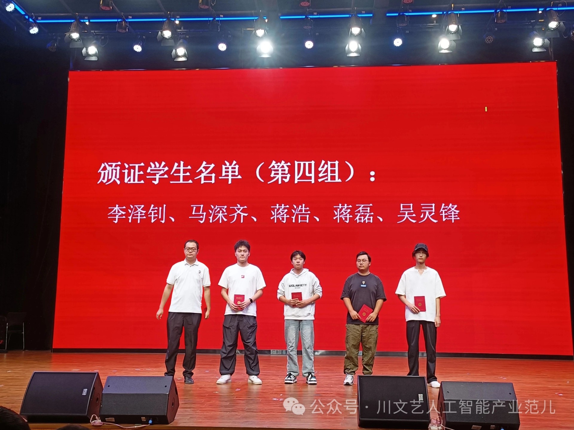 随后,仪式进行第二项:颁发证书。分别由网易人工智能产业学院张新副院长、办公室主任单文博、团总支书记李尚洁、纪检委员胡广泽为四组共计25名获证同学颁发了数字化能力职业证书。