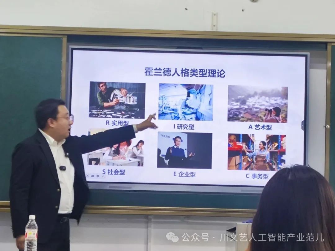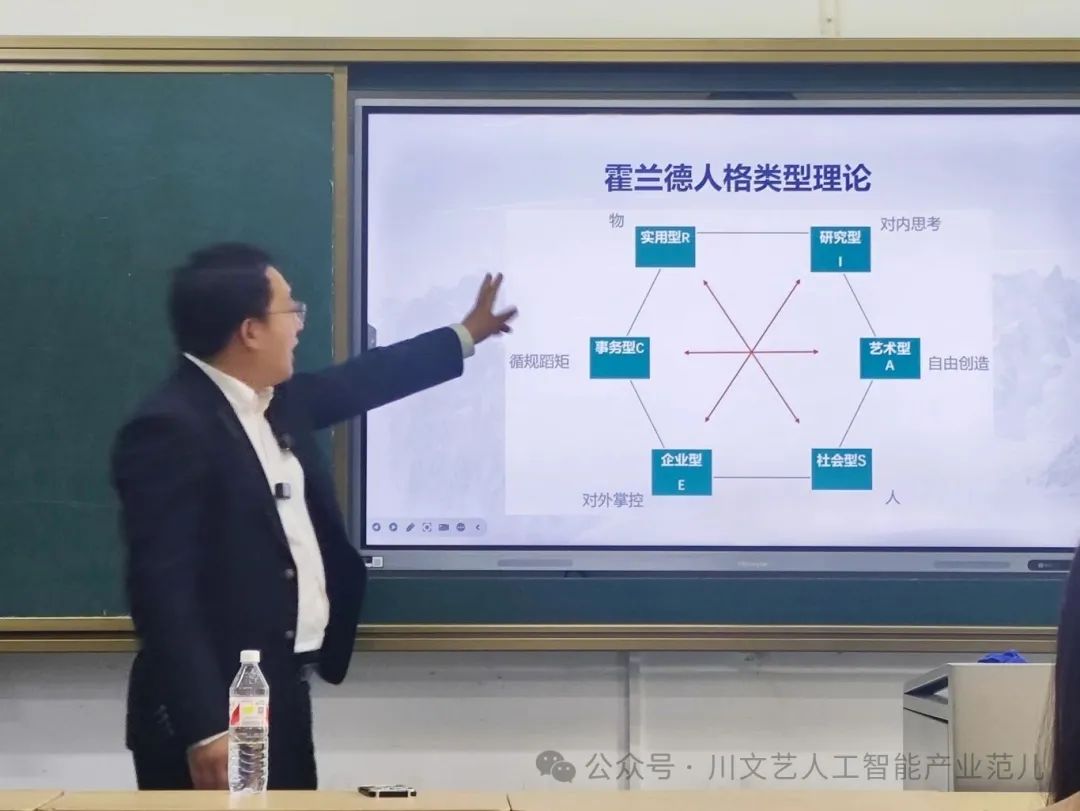 讲座步入尾声,梁老师选取了部分同学,根据他们的霍兰德测试结果进行深入分析。梁老师详细解读了每种人格类型的特点,并结合社会的岗位需求,为同学们指明未来的职业方向以及适合的岗位。例如,对于具有研究型人格特点的同学,梁老师建议可以关注技术研发等岗位;而社会型人格的同学,则更适合人力资源、教育培训等岗位。老师专业且精准的分析,让同学们豁然开朗,对自己的未来职业发展有了更明确的目标。