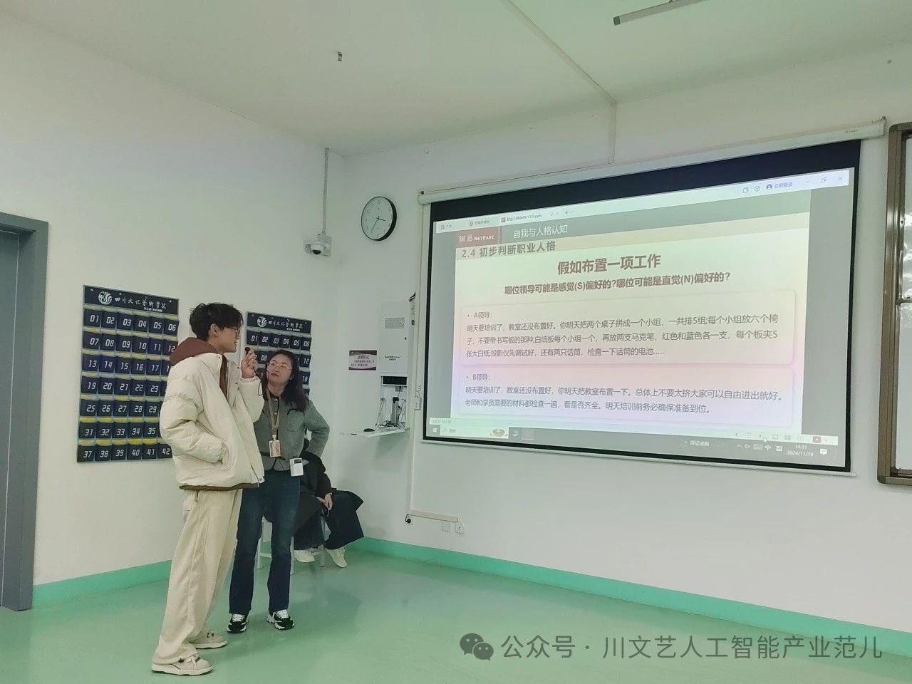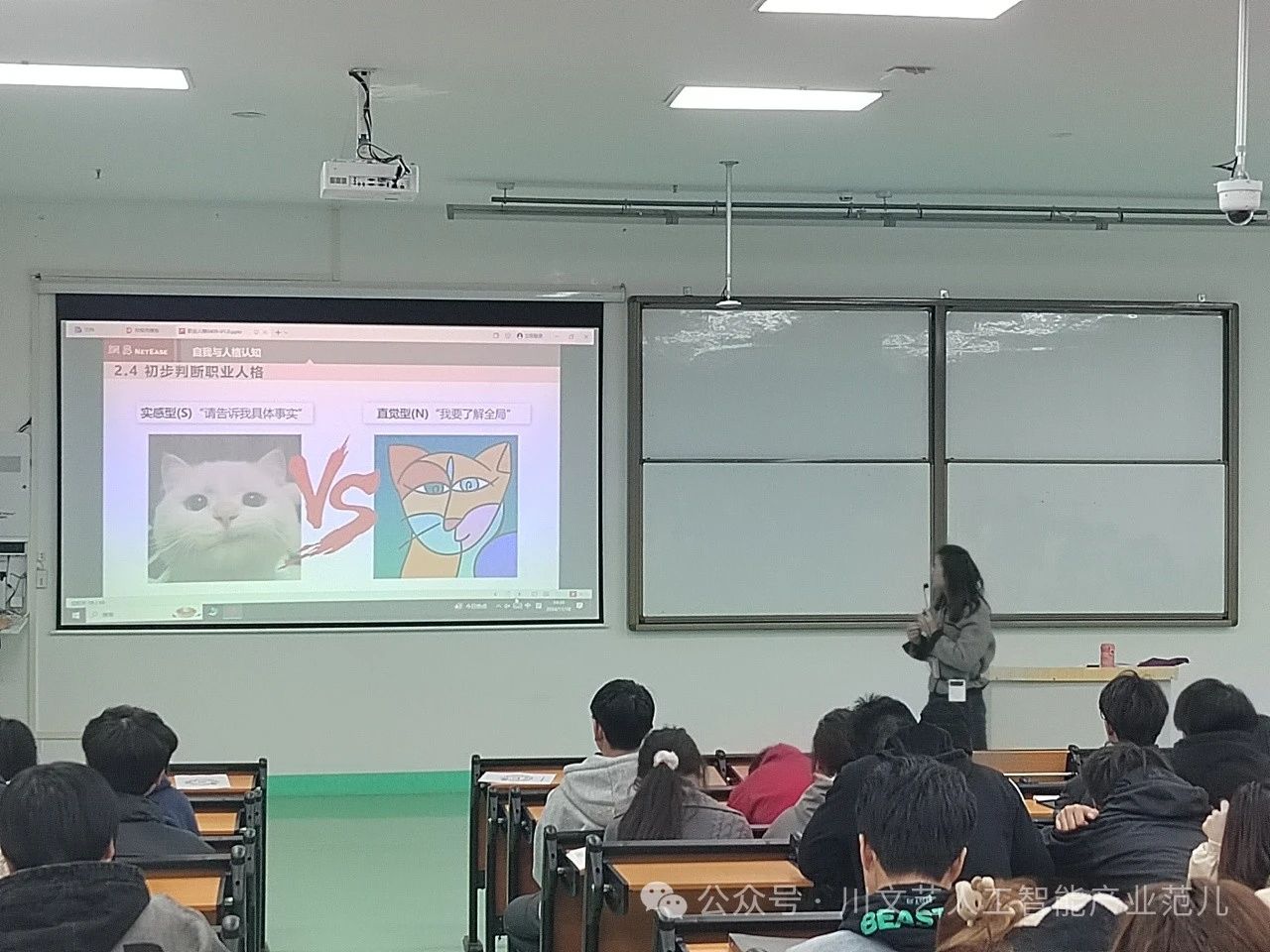 为了帮助同学们深入了解自我,理解他人,为未来的职业规划奠定坚实基础。网易人工智能产业学院携手网易有道产教融合中心,于2024年11月18日在梓潼校区教学楼B栋202室举办了以“职业与人格”为主题的讲座,讲座由网易有道驻校学业就业规划老师黄燕主讲,网易人工智能产业学院学生参与。